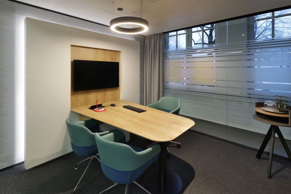 Das Design folgt dem Leitgedanken des „Treffpunkt Sparkasse“: warme Materialien, Glasflächen und natürliche Beleuchtung schaffen ein freundliches, einladendes Ambiente. Individuell gestaltete Beratungskuben bieten Rückzugsmöglichkeiten, während das offene Foyer den Dialog fördert.