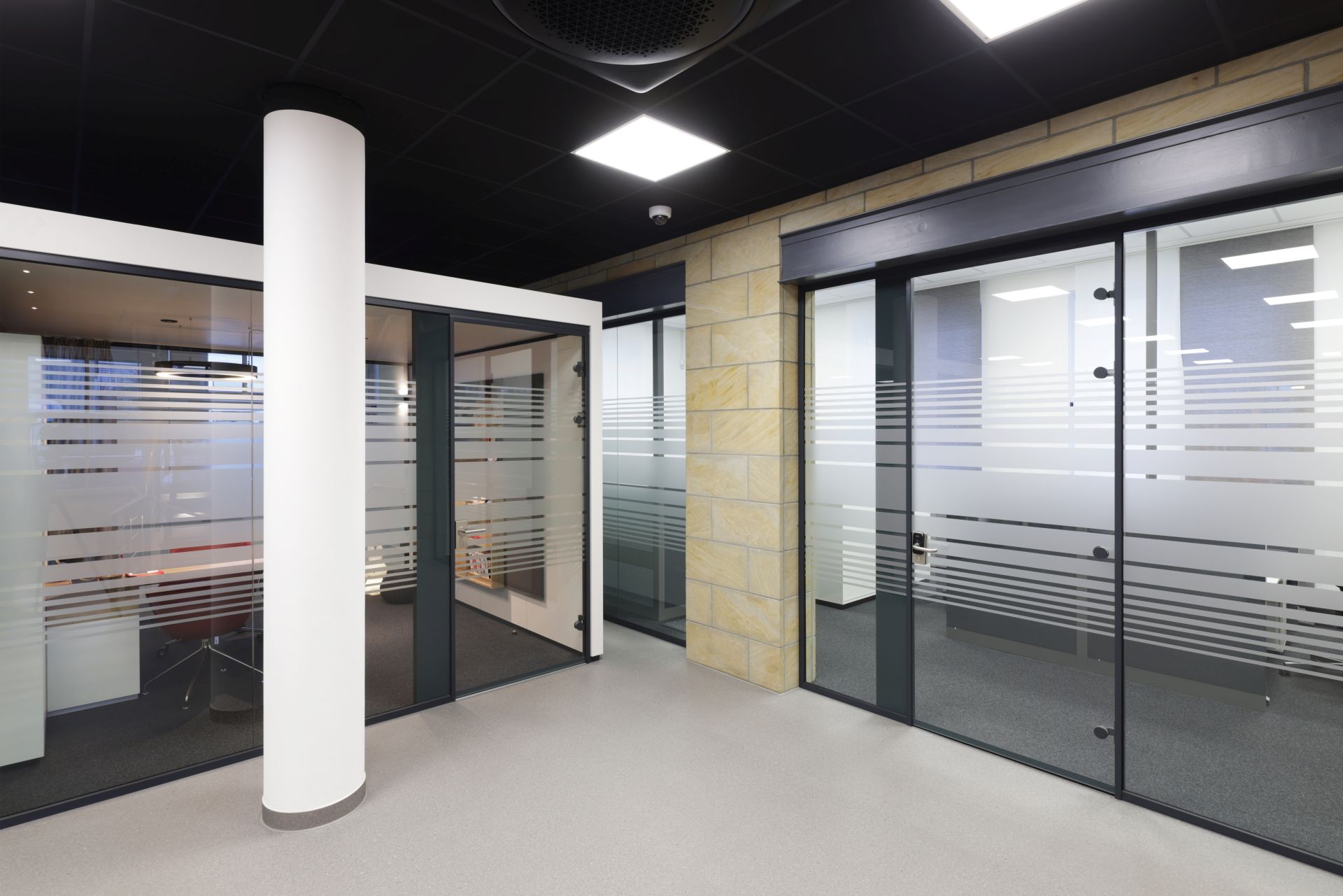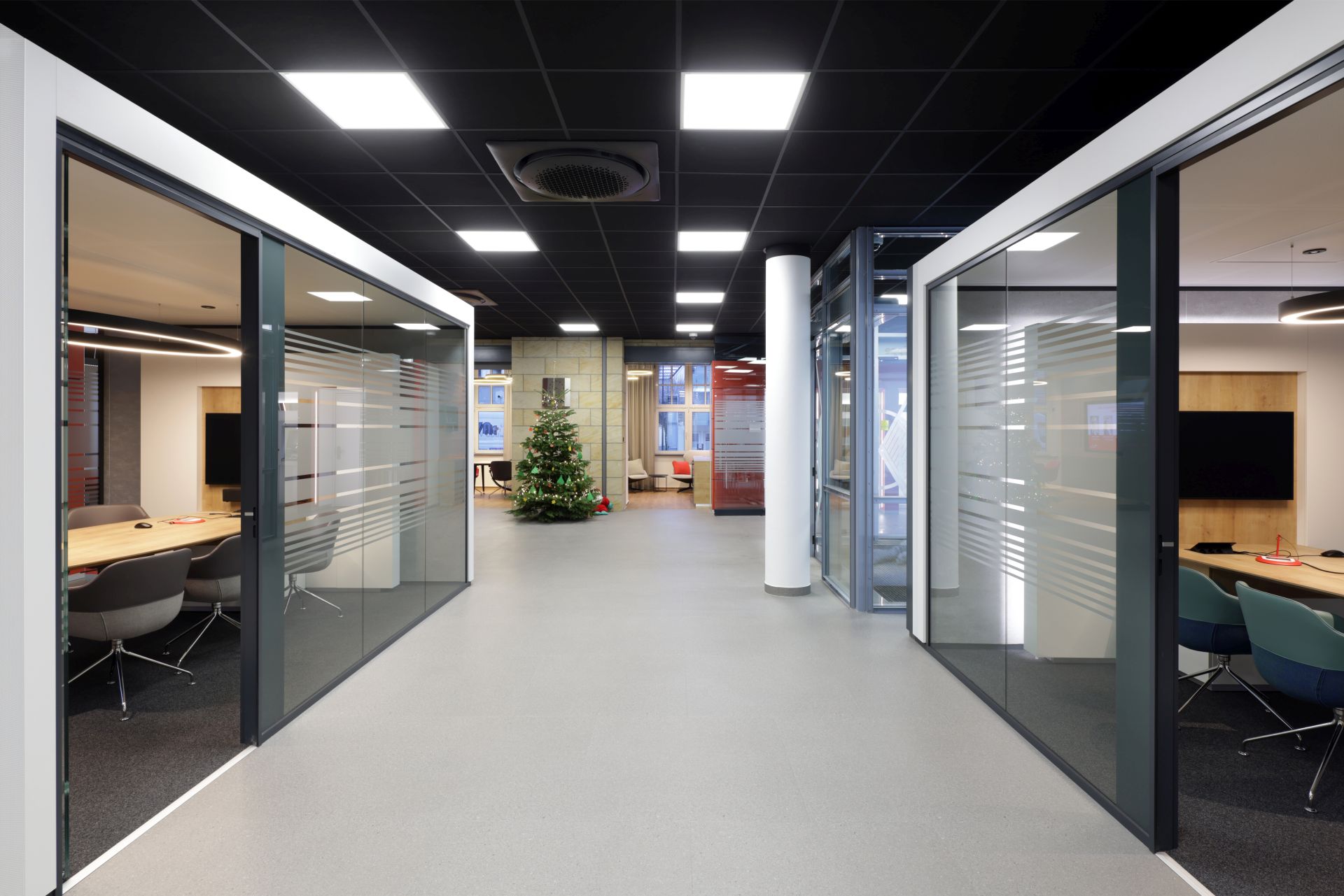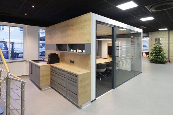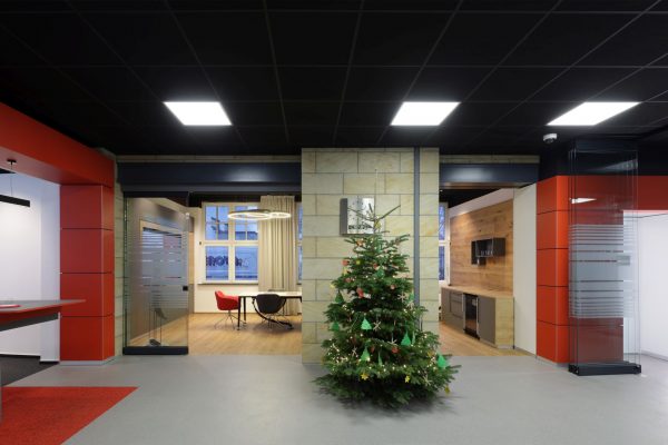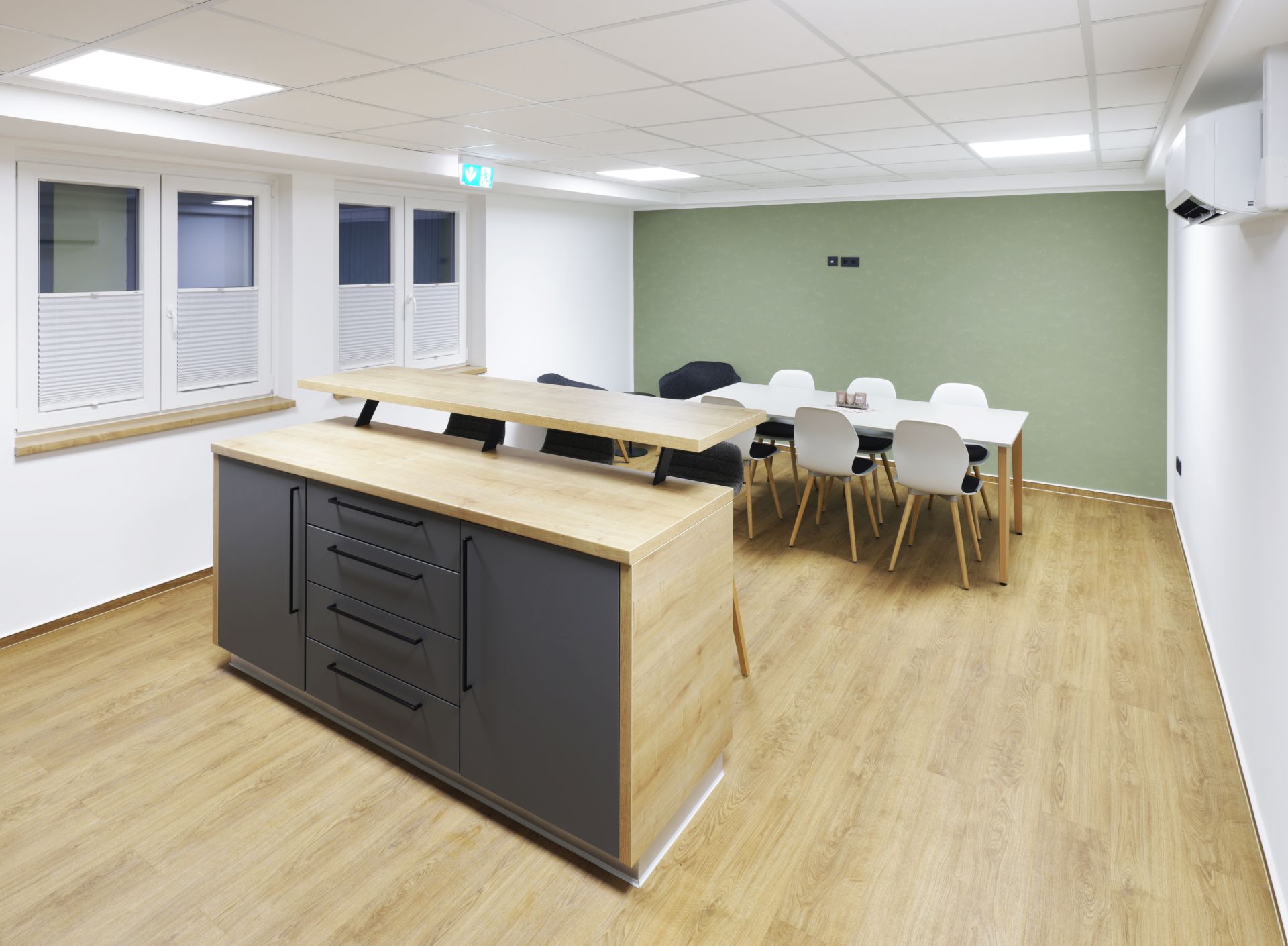 Das Design folgt dem Leitgedanken des „Treffpunkt Sparkasse“: warme Materialien, Glasflächen und natürliche Beleuchtung schaffen ein freundliches, einladendes Ambiente. Individuell gestaltete Beratungskuben bieten Rückzugsmöglichkeiten, während das offene Foyer den Dialog fördert.