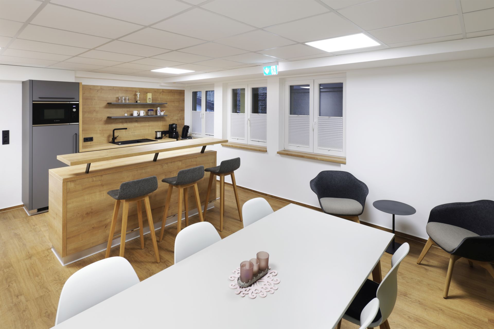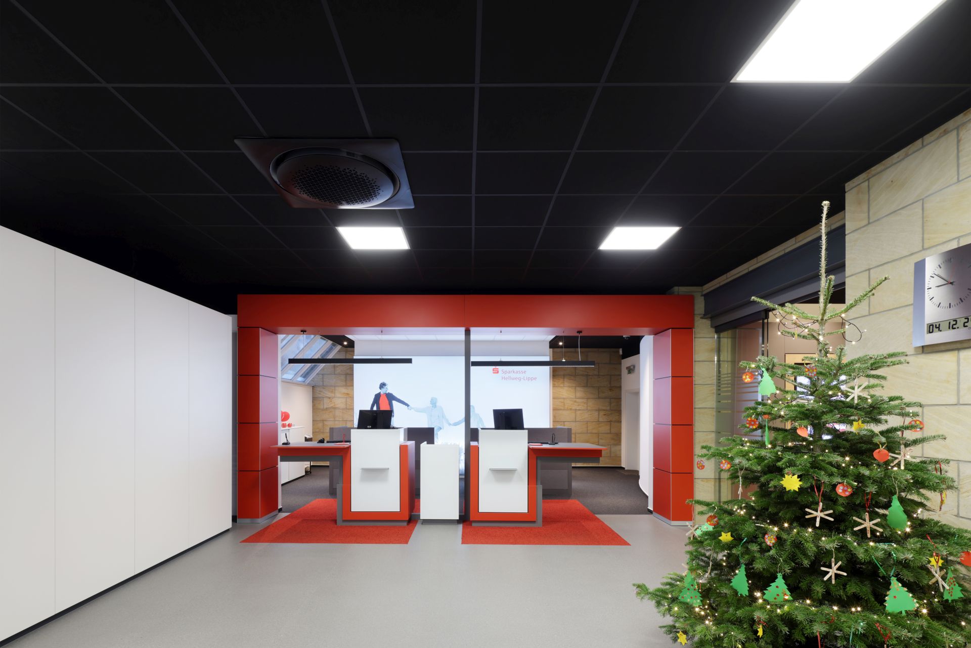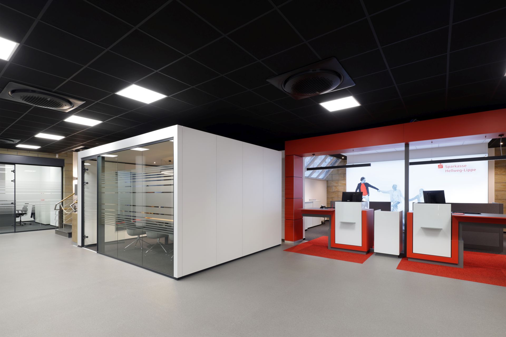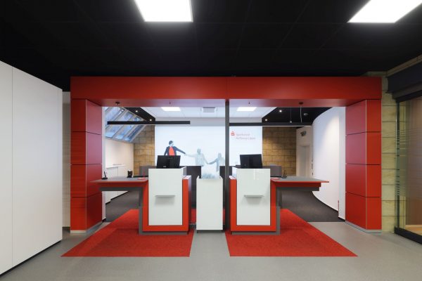 Mit dem Umbau der Sparkassen-Filiale Rüthen entstand ein modernes, barrierefreies Raumkonzept, das Offenheit, Transparenz und Diskretion verbindet. Die Filiale wurde vollständig neu strukturiert und auf eine Ebene organisiert, um Kundenkomfort und klare Orientierung zu gewährleisten.