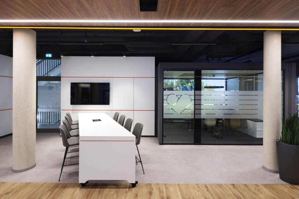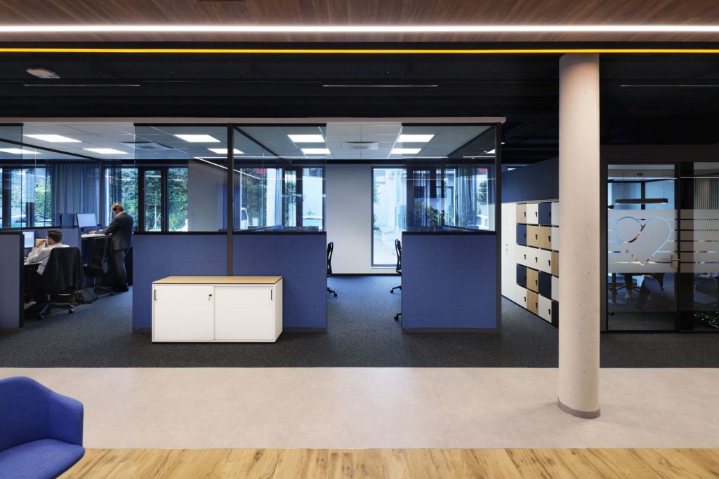 Auch für die Mitarbeiter bedeutet das neue Konzept einen deutlichen Wandel: Statt in abgeschlossenen Büros arbeiten sie in offenen, gemeinschaftlich genutzten Bereichen, die Kommunikation und Zusammenarbeit fördern.