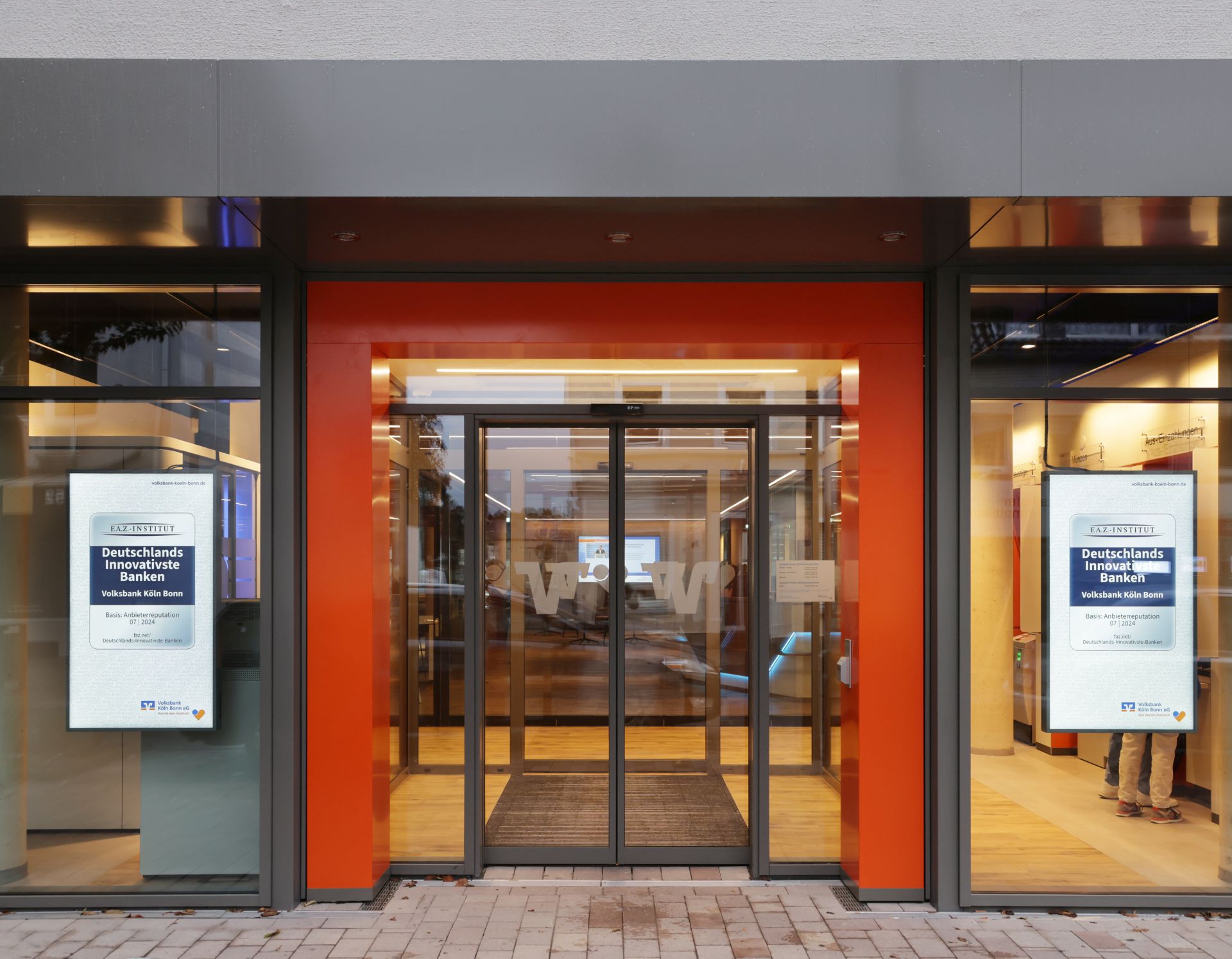 Das neue Filialkonzept macht die Marke Volksbank Köln Bonn nicht nur sichtbar, sondern erlebbar: Banking wird mit Begegnung, Beratung mit Gemeinschaft und Regionalität mit Innovation verbunden.